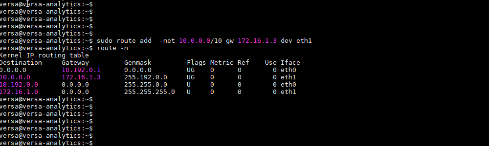 Step 2 : Configure static route on Analytics and ensure reachability to 10.0.0.0/12