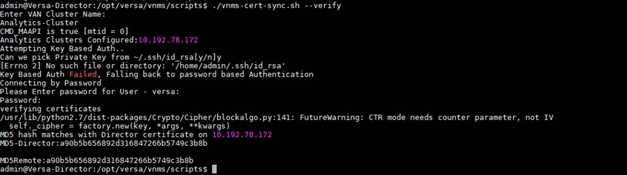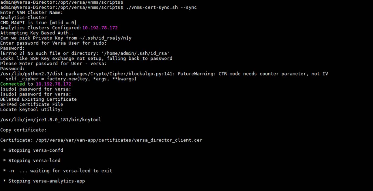 Execute command : /opt/versa/vnms/scripts/vnms-cert-sync.sh --sync