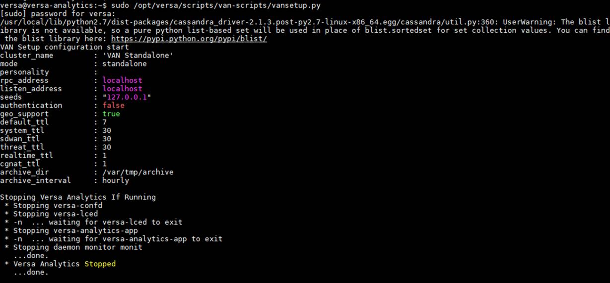 Execute the command : # sudo /opt/versa/scripts/van-scripts/vansetup.py