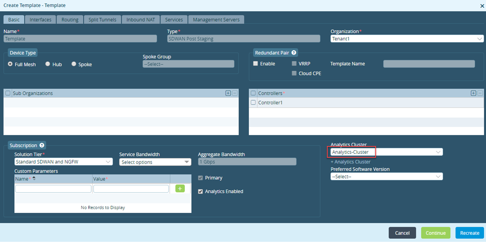If Analytics Cluster is selected in the template, then Collector's configuration will be present.