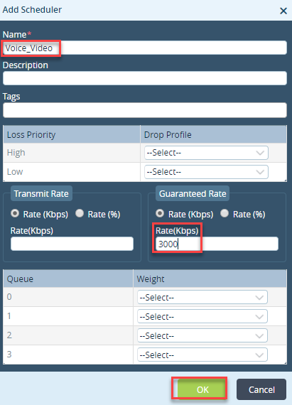 Configure scheduler for Voice/Video traffic and specify Guaranteed rate of 3M