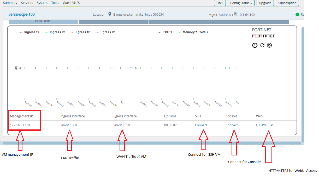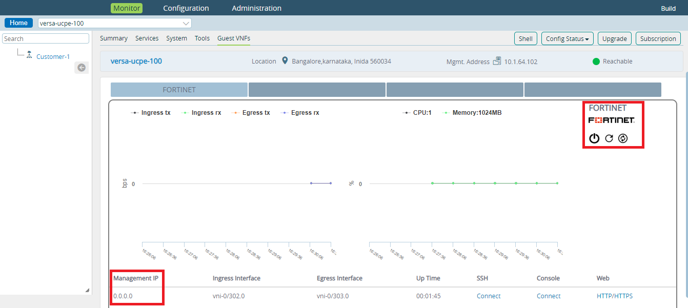 - Click on uCPE Device > Click on Monitor > Guest VNFs