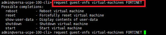 By default, there is no any management IP to the guest-vnf created. Administrator needs to enable DHCP on Fortinet VM