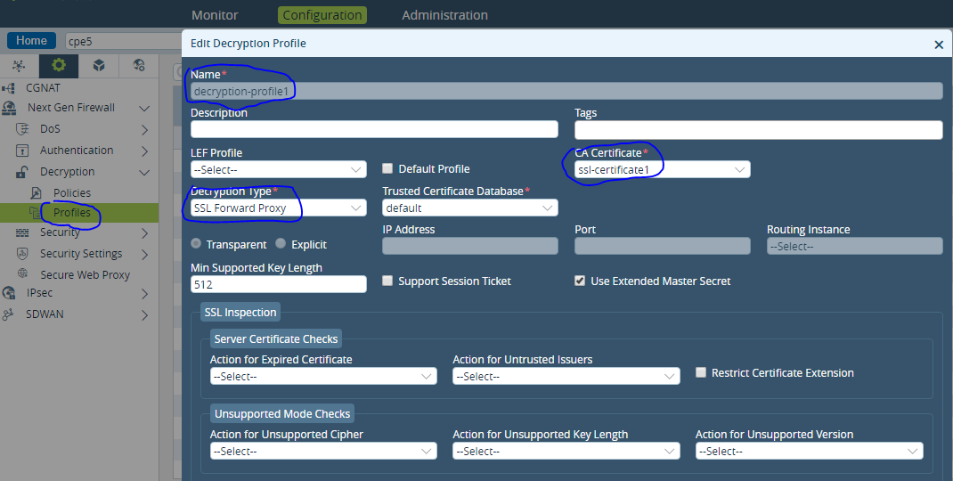 This document illustrates decryption configuration for both decryption types: “Forward Proxy” and “Full Proxy”.
