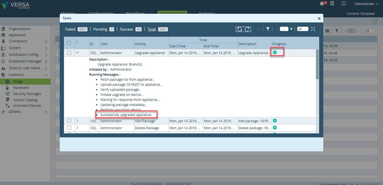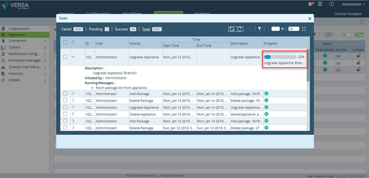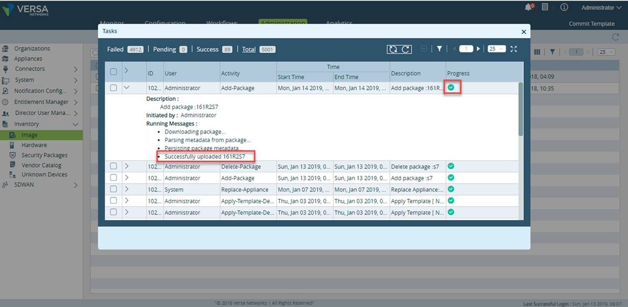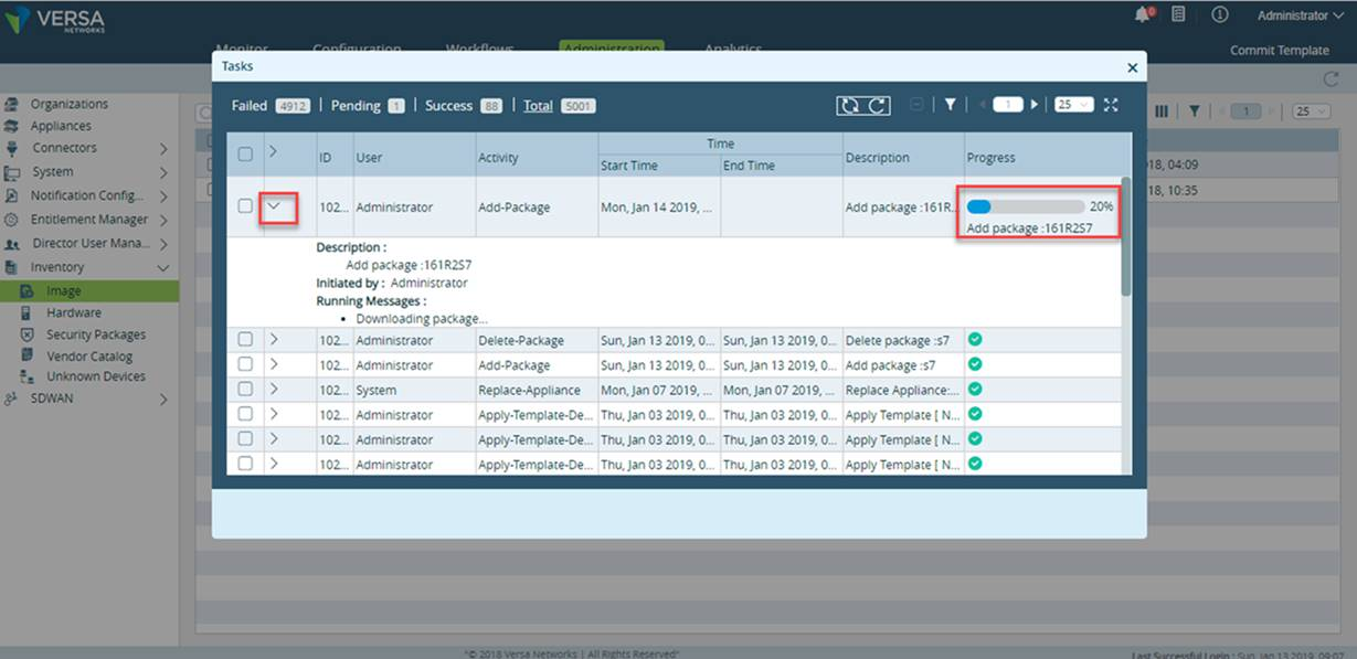 - Upload progress will be shown on the Versa Director GUI