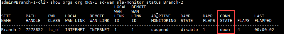 show orgs org <Org-name> sd-wan sla-monitor status <remote-branch-name>