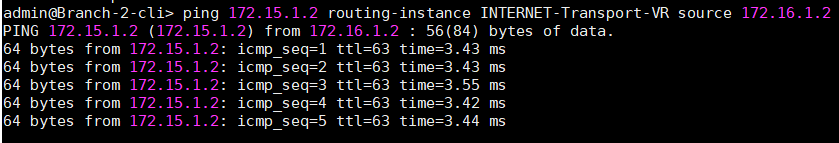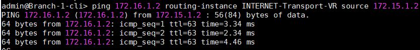 ping <remote-public-ip> routing-instance <transport-vr> source <transport-IP>