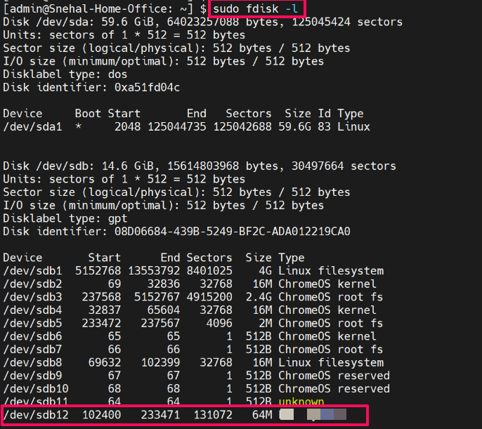 Here in the below, sample USB is getting identified as sdb12. it can be any sd<x>, so please change the subsequent values accordingly.