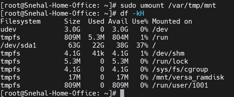Then use df -kH to confirm if the sd<x> is not listed, which means the USB has been safely unmounted.