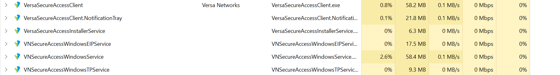 Versa SASE client needs minimal system resources to be run and below is a snapshot from a Windows 11 PC.