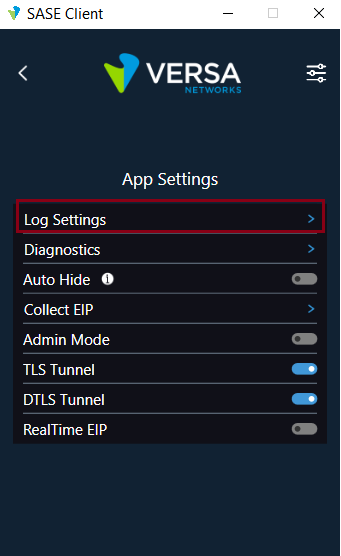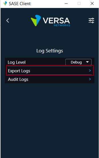 Click on 'Export logs' and Save it to your computer and share via link shared by Versa Support Team.
