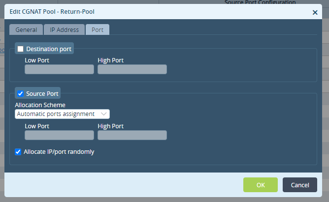 3. Now we have DNAT and NAPT defined, we need to configure a policy to to do cgnat.