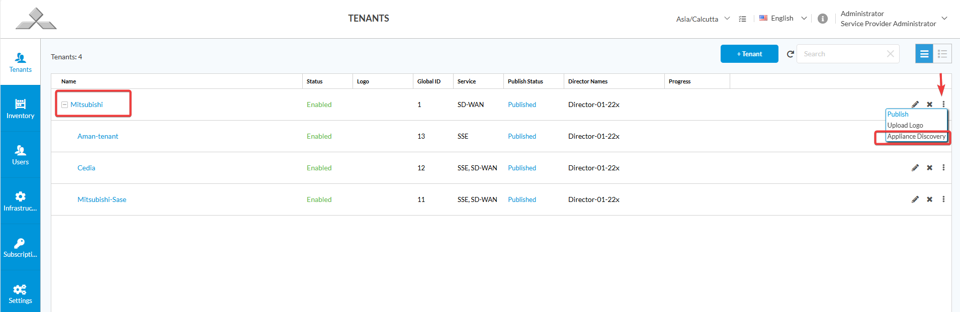 5. Deploy the device and perform "appliance discovery" at the tenant level so that the added device gets synced to Concerto.