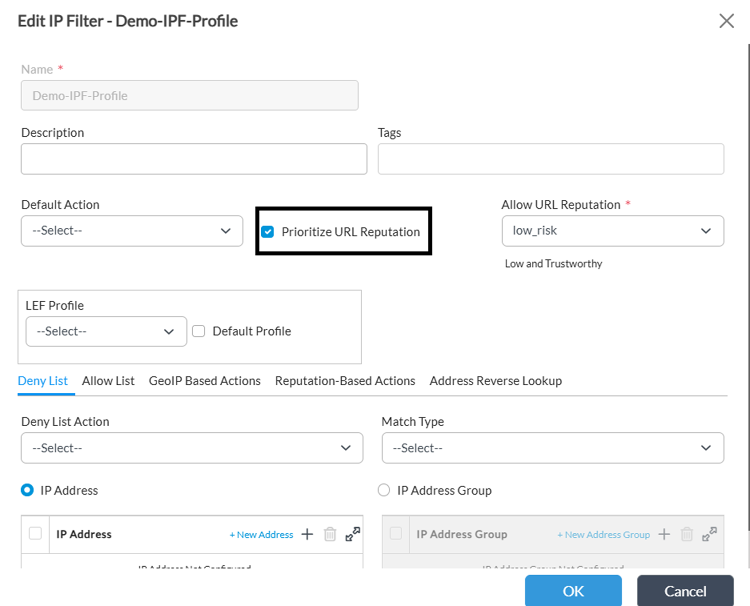 When the “Prioritize URL Reputation” option is enabled in an IP Filtering profile: