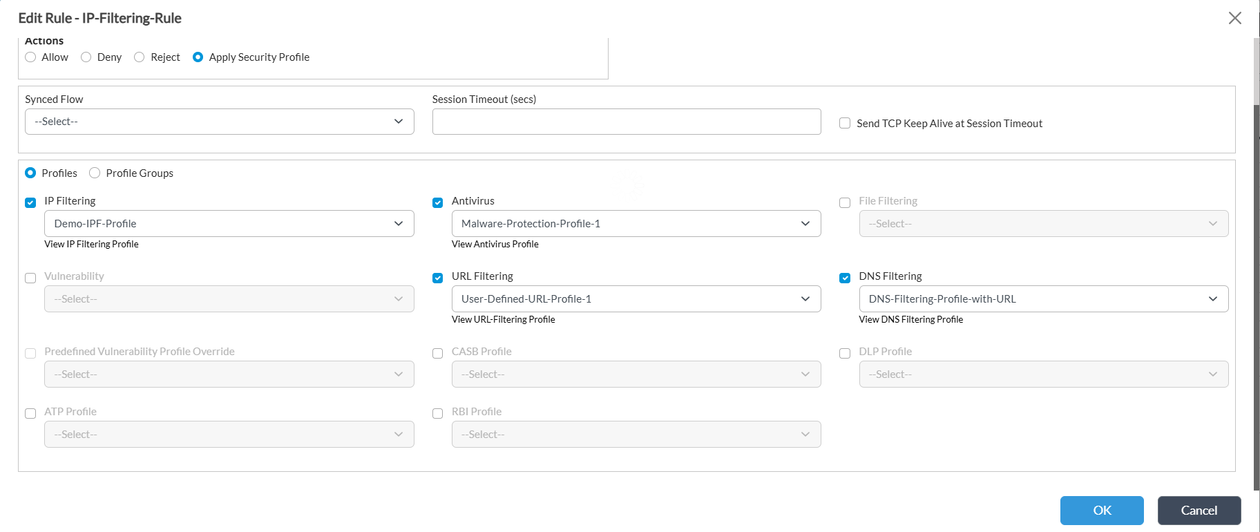 Finally, attach the updated DNS Filtering profile to the relevant security policies.