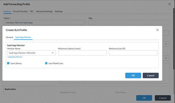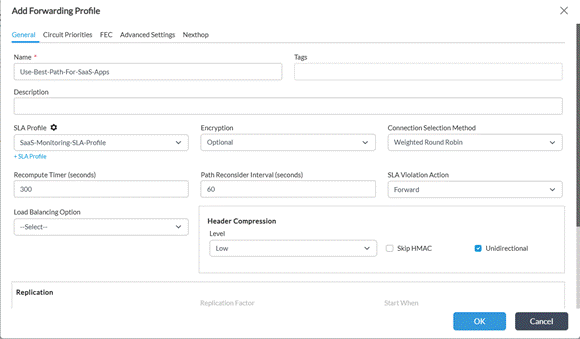 Forwarding Profile — Applies the SLA profile and enables automatic path selection based on monitored performance