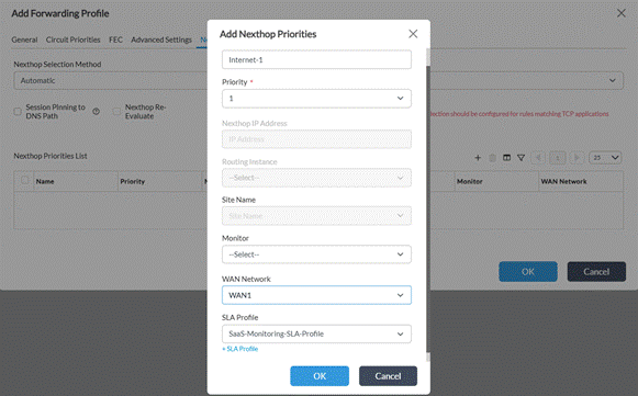 4 (optional) | Forwarding Profile → Nexthop | Set WAN Priority and per-nexthop SaaS app monitor to override General tab |