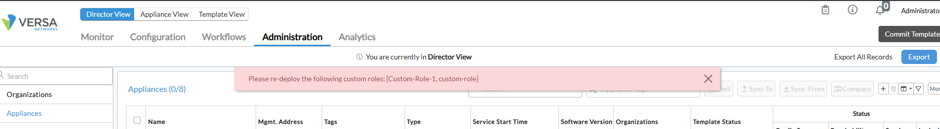 How to: Fix the error prompt to re-deploy Custom Role on Versa Director.