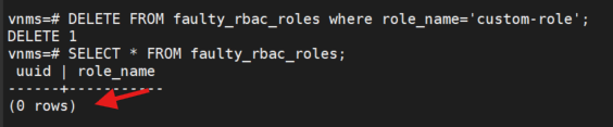 - vnms=# DELETE FROM faulty_rbac_roles where role_name='Custom-Role-1';